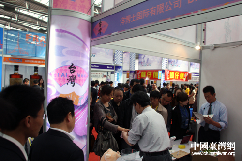 5日上午的西洽會上,臺灣展商忙碌的招待前來咨詢、購買的消費人群。(中國臺灣網 楊麗 攝)