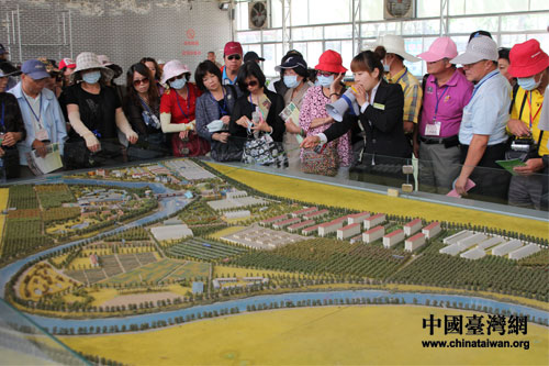 臺灣基層民眾參訪團走進北戴河集發生態園。圖為講解員向大家介紹生態園規劃。(中國臺灣網發 張成標 攝)