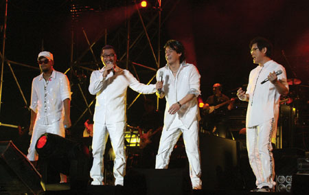 四人集體出場時,為觀眾奉獻了老歌與新歌大拼盤。從歌迷的反應來看,新歌顯然不如老歌“吃香”,幾乎每首老歌都能引起全場大合唱,當他們演繹《童年》、《光陰的故事》、《戀曲1990》《鬼迷心竅》等老歌時,不僅帶著“70后”回到青澀的初戀時代,也令“60后”、“80后”加入音樂狂歡,即使“90后”的歌迷看到老一輩觀眾如此癡情時,他們在聲嘶力竭合唱后仍不過癮,甚至離開座位翩翩起舞。