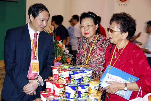 2006年10月,海峽兩岸農業合作成果展覽暨項目推薦會在廈門開幕。圖為尤習貴主任向客人們介紹臺企湖北新美香食品有限公司的參展商品。(資料圖片)