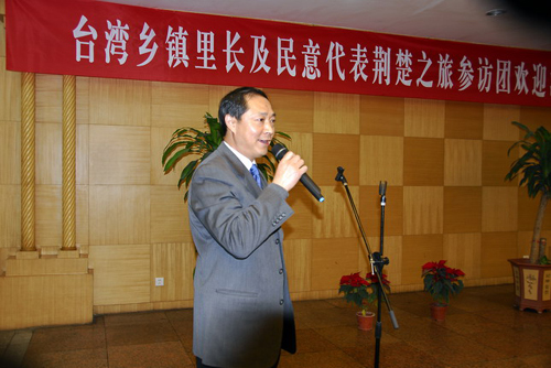 2006年12月,臺灣鄉鎮里長及民意代表團來鄂交流。圖為尤習貴主任致歡迎辭。(資料圖片)